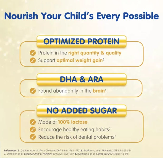 ✓ Vitamins and minerals including Calcium, Vitamin D, and Iron to support a child's optimal growth and development.